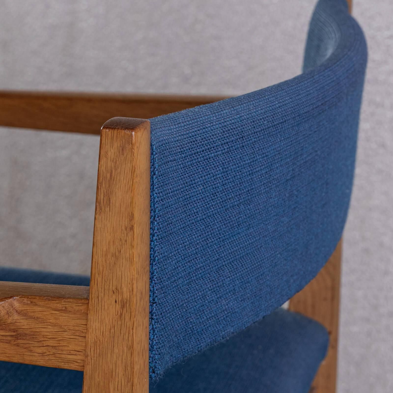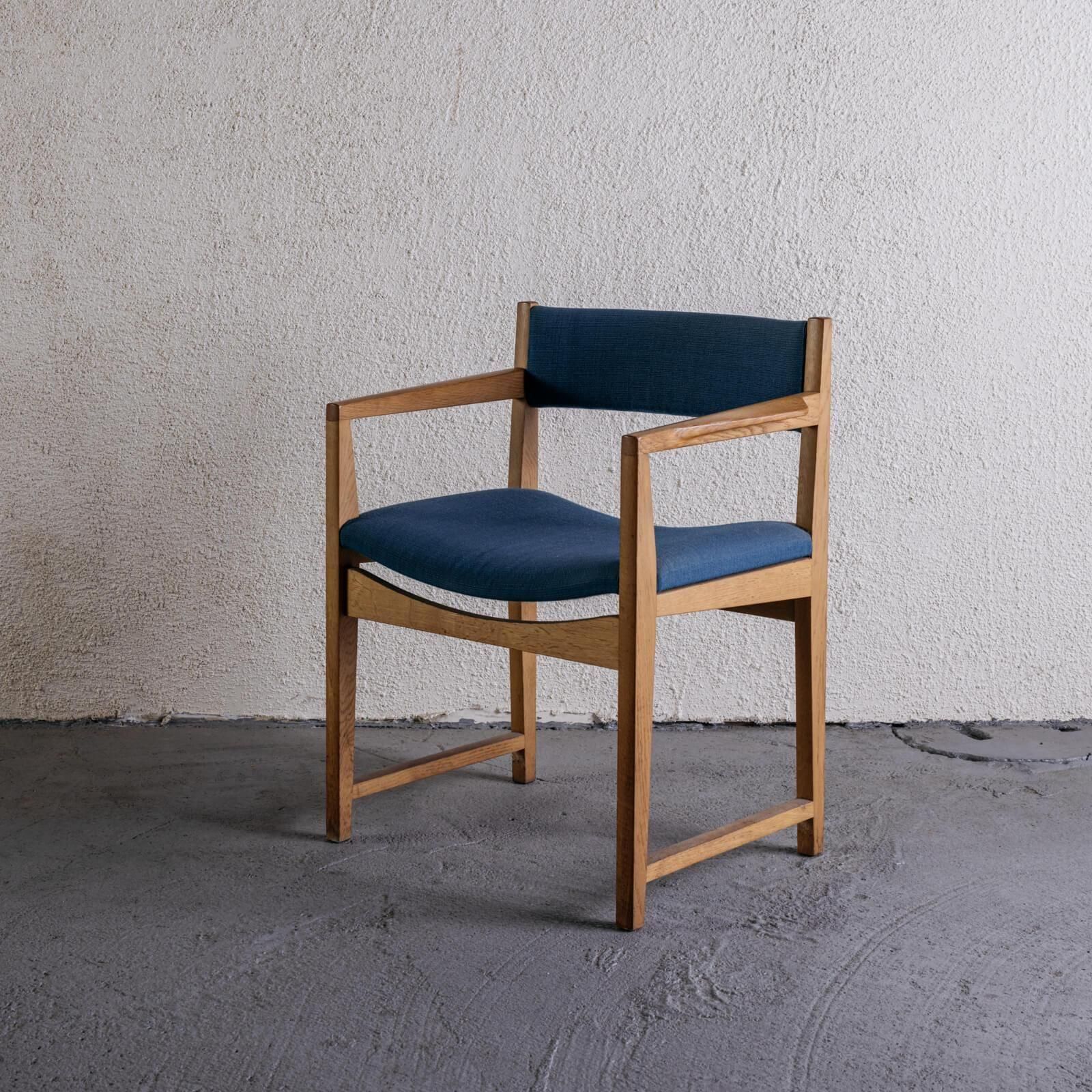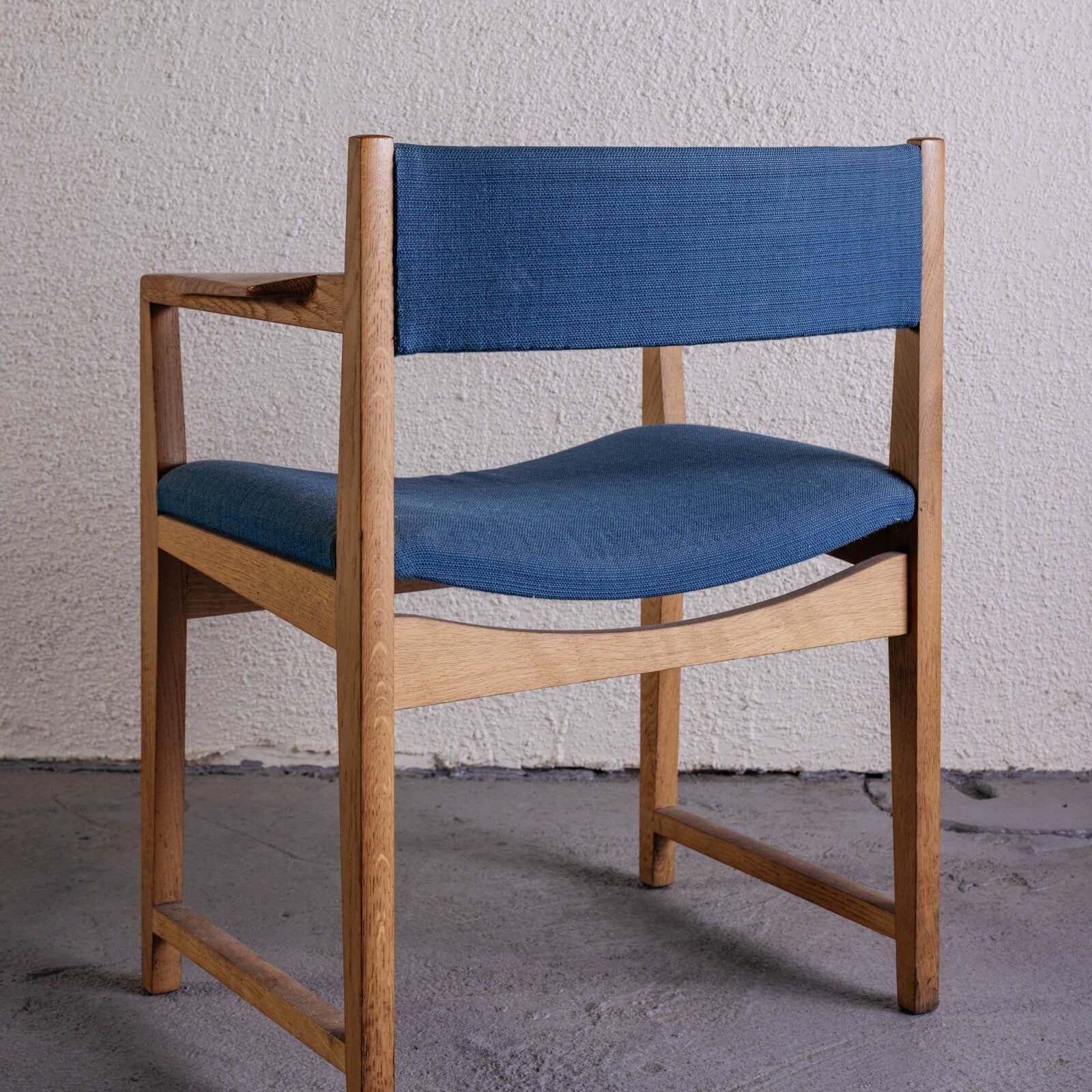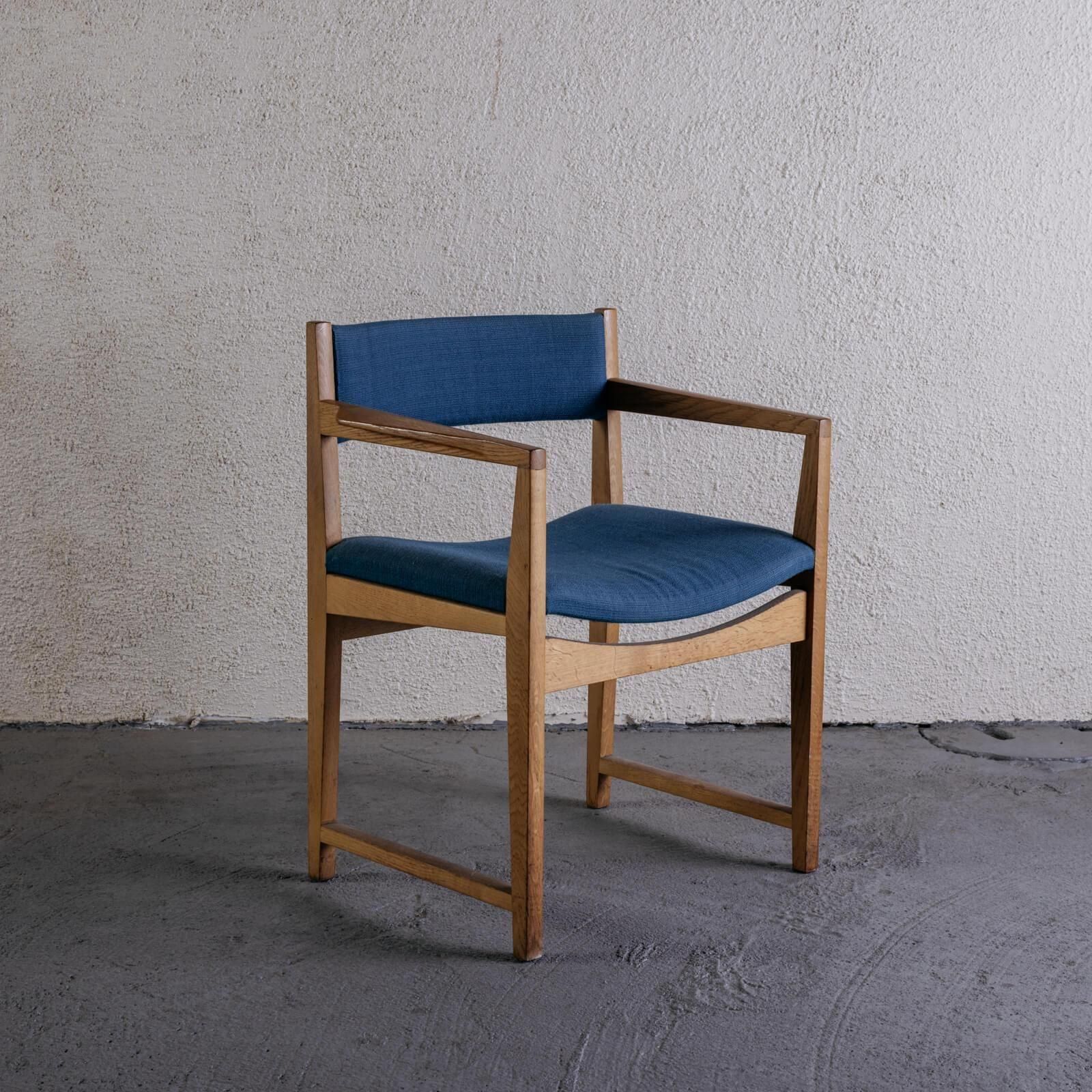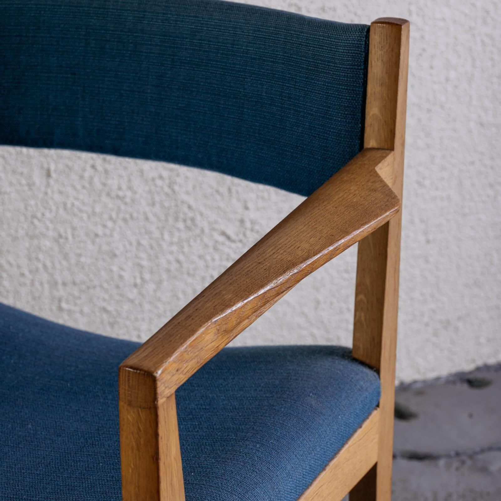 クリーンなラインで構成されたフレームは、オーク材ならではの穏やかな木目と明るい色目が魅力。直線的でミニマルな構造の中にアーム先端の柔らかい面取りや脚部のバランスなど、当時のデンマーク家具らしい繊細な設計が宿ります。