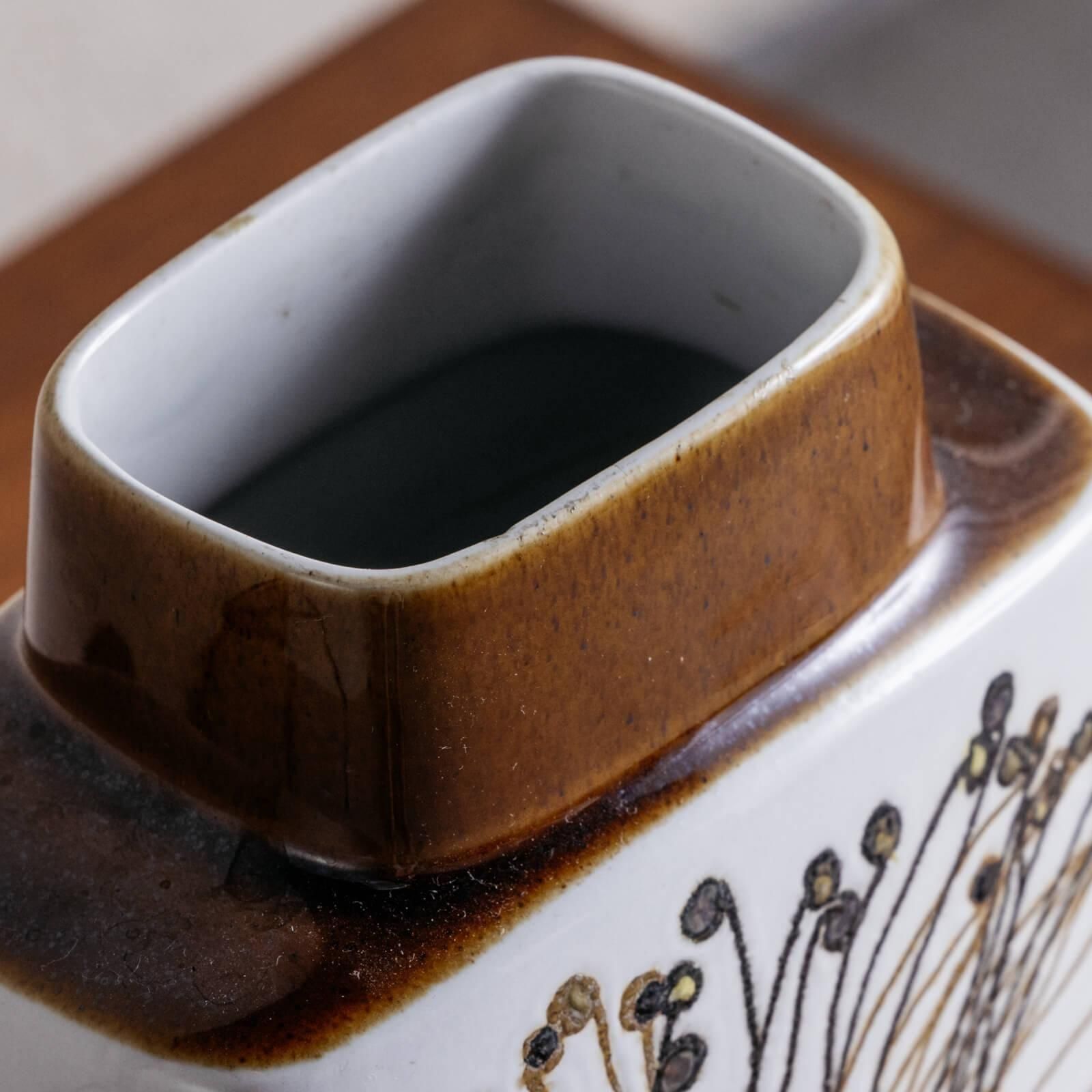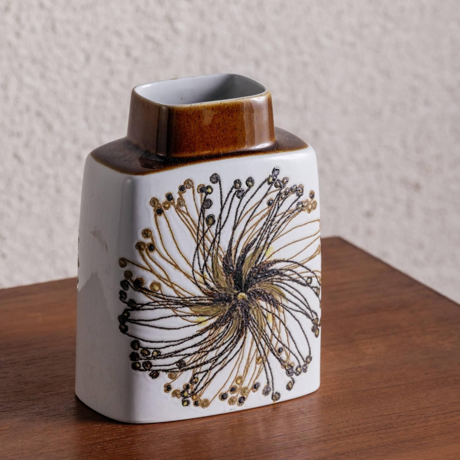 デンマークの名窯 Royal Copenhagen(ロイヤルコペンハーゲン) が誇る人気シリーズ、Baca(バッカ) のヴィンテージ花器。こちらの花器は、白い素地に植物の放射状の広がりを思わせる大胆なパターンが描かれた一品。繊細なラインと立体的な釉薬の凹凸により、光の当たり方で表情が変わる奥行きあるデザインです。