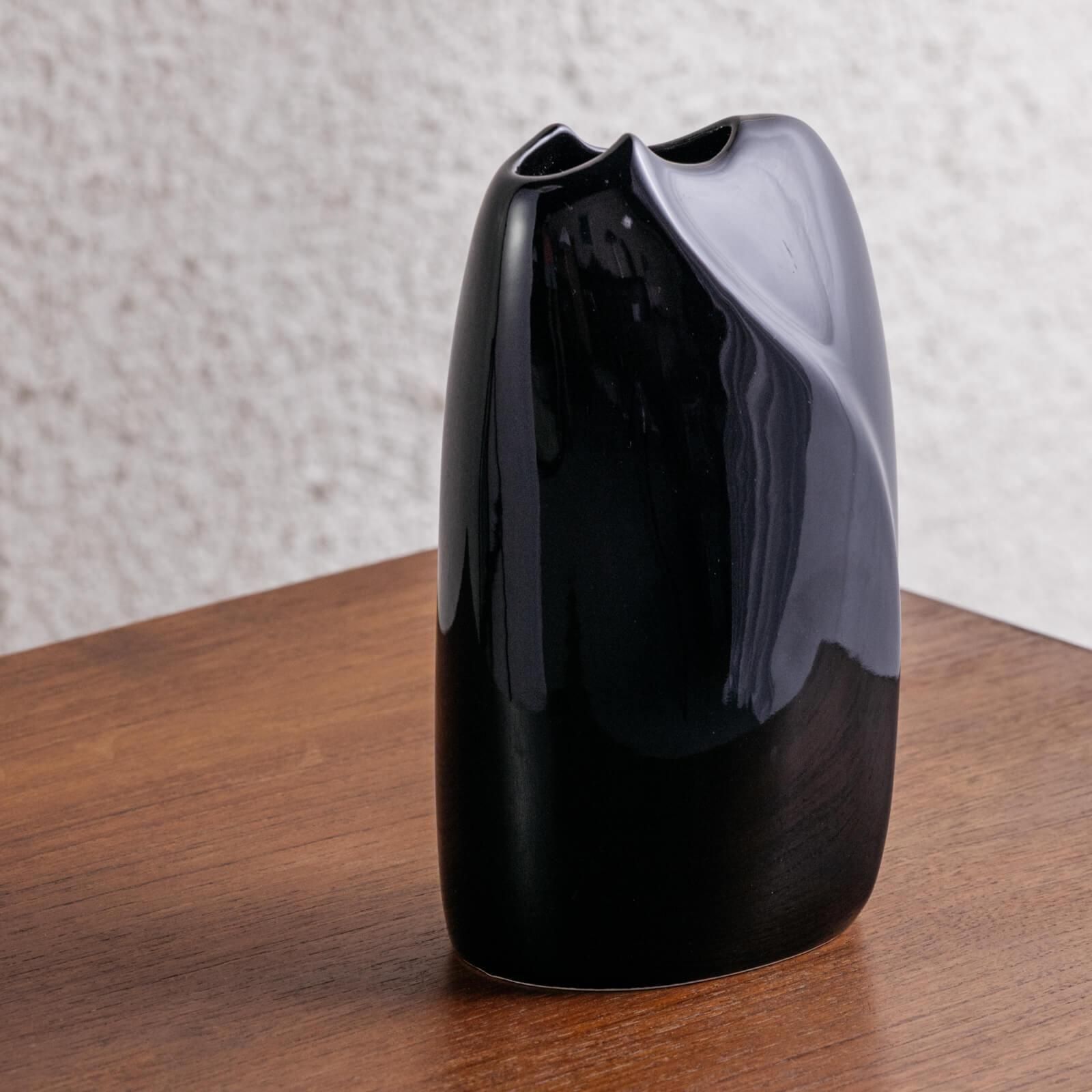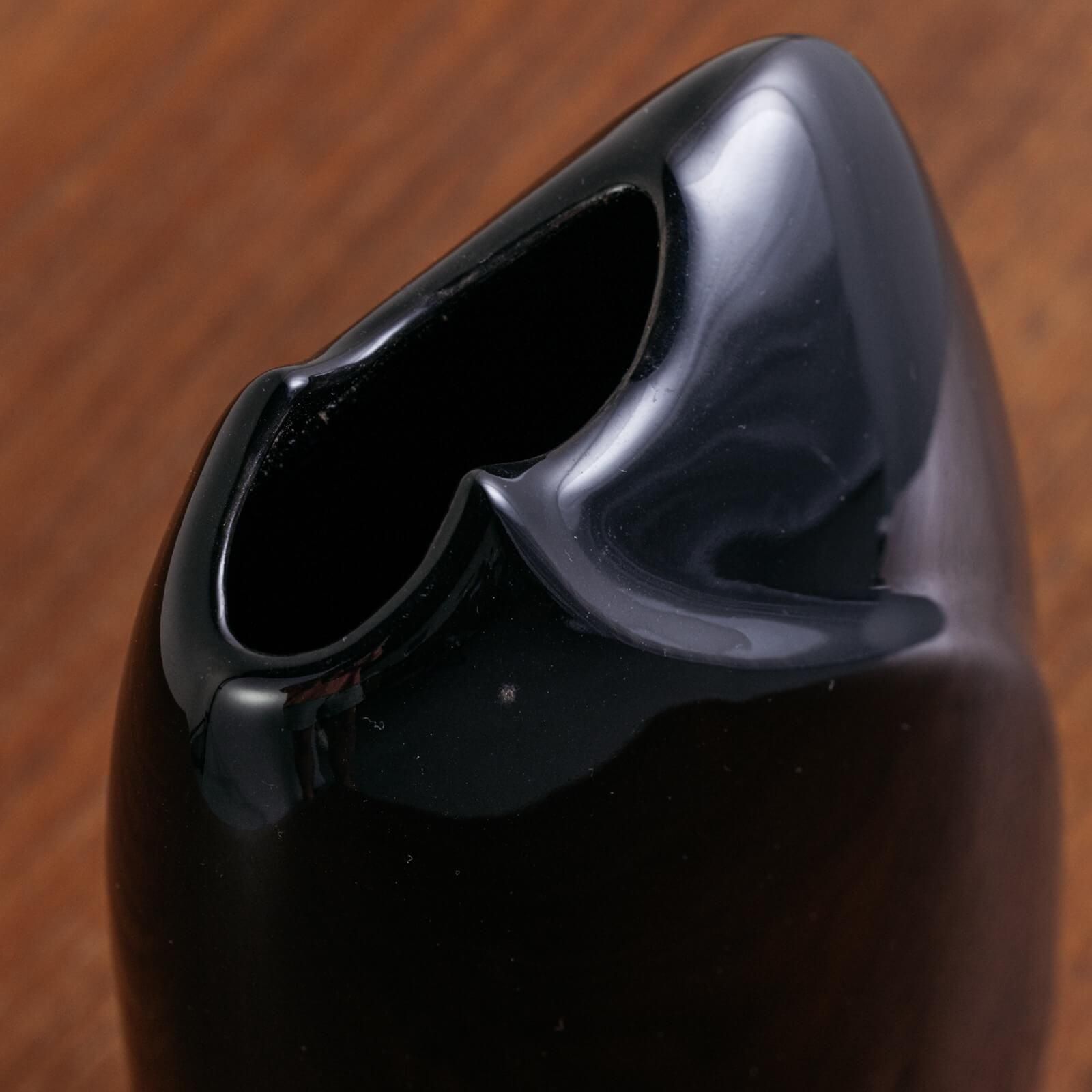フィンランドの老舗陶器メーカー ARABIA(アラビア) によるヴィンテージ陶器。漆黒の釉薬が滑らかな光沢を放ち、彫刻作品のような存在感を持つ美しい一点です。オーガニックな曲線で形作られたフォルムは、アラビアらしい北欧モダンデザインを象徴するもの。流れるように入ったラインが陰影を生み出し、光が当たる角度によって表情が大きく変化します。