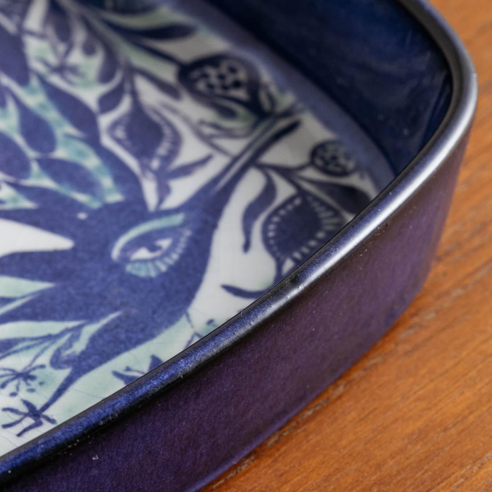 デンマークの名窯 Royal Copenhagen(ロイヤルコペンハーゲン) による、Tenera(テネラ)シリーズの23cmスクエアプレート。プレート全体に広がる自由なラインは、60年代の若い女性デザイナーたちが生み出したテネラシリーズ特有のもの。異国的な植物、鳥、葉、抽象パターンが複雑に組み合わされ、眺めるたびに新しい発見のある豊かな表情が魅力です。